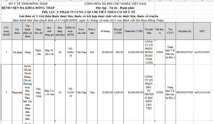 1. Danh mục thuốc Dược liệu, thuốc có kết hợp dược chất với dược liệu 2025-2027 (QĐ 875-BVĐT)