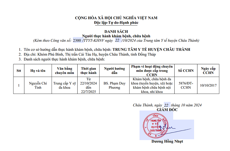 DANH SÁCH NGƯỜI THỰC HÀNH KHÁM BỆNH CHỮA BỆNH T12-2025