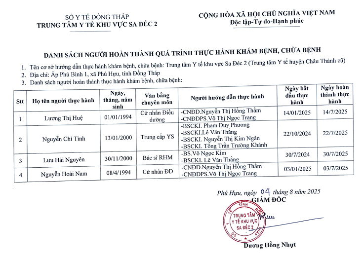 DANH SÁCH NGƯỜI THỰC HÀNH KHÁM BỆNH CHỮA BỆNH T12-2025