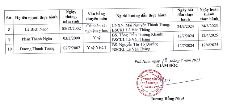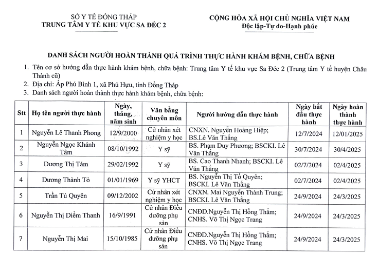 DANH SÁCH NGƯỜI THỰC HÀNH KHÁM BỆNH CHỮA BỆNH T12-2025