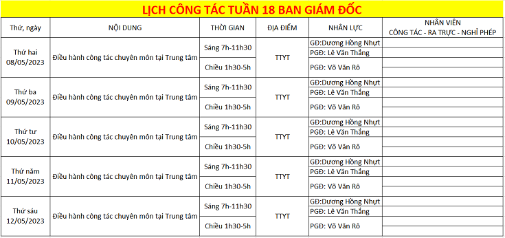 LỊCH CÔNG TÁC TUẦN 18