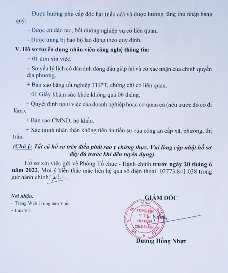 THÔNG BÁO TUYỂN DỤNG