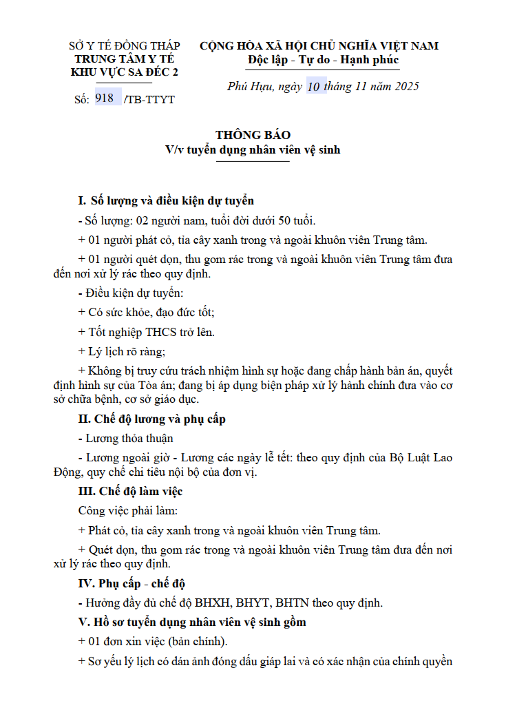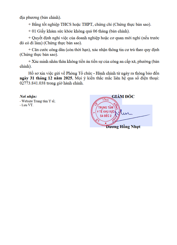 TRUNG TÂM Y TẾ KHU VỰC SA ĐÉC 2 – ĐỒNG THÁP