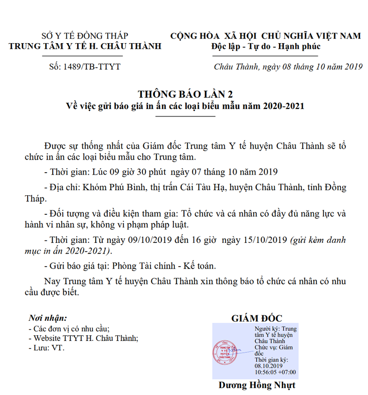 V.v gửi báo giá in ấn các loại biểu mẫu năm 2020-2021