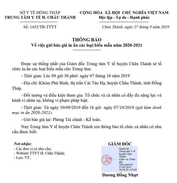 Về việc tiếp nhận báo giá tổ chức mua sắm trang thiết bị, hóa chất, vật tư y tế...