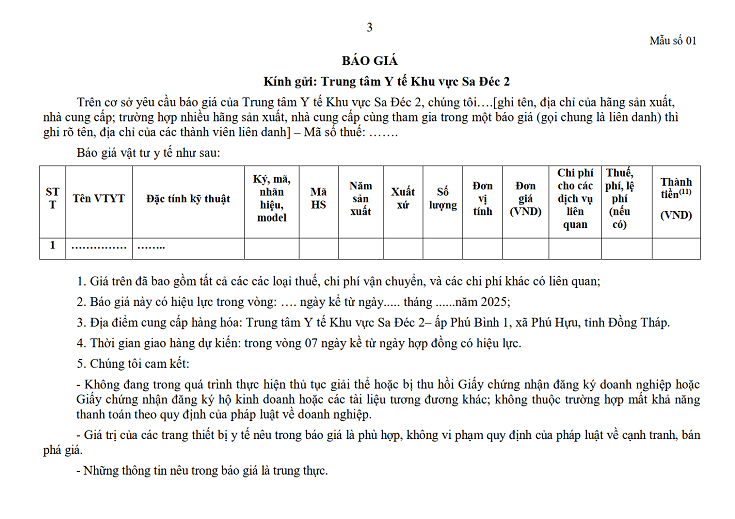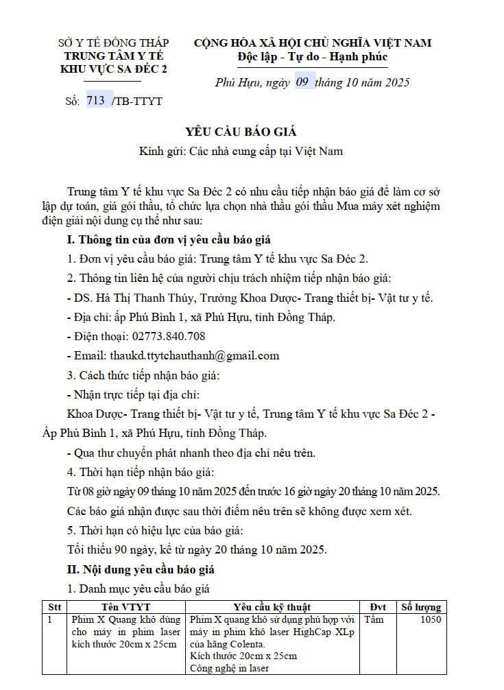 Trung tâm Y tế khu vực Sa Đéc 2 có nhu cầu tiếp nhận báo giá để làm cơ sở lập dự toán, giá gói thầu, tổ chức lựa chọn nhà thầu gói thầu Mua máy xét nghiệm điện giải nội dung cụ thể như sau