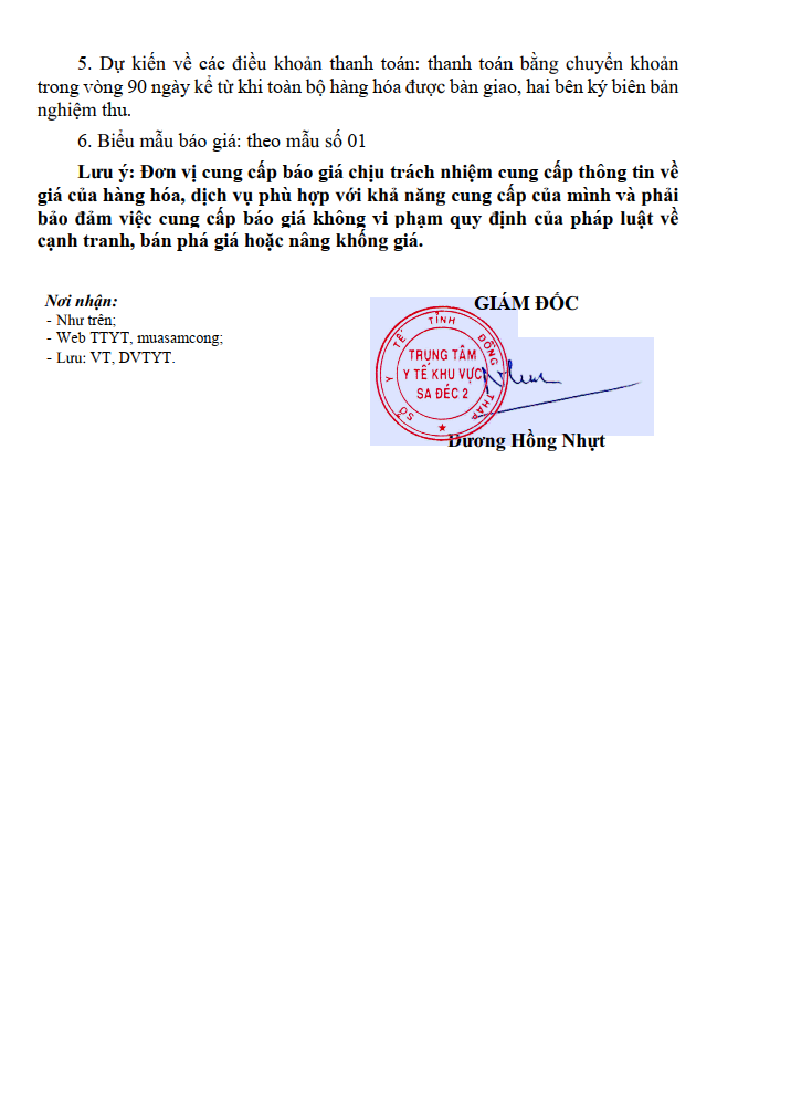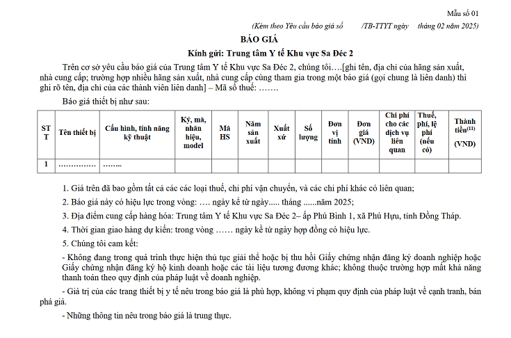 THƯ MỜI CHÀO GIÁ