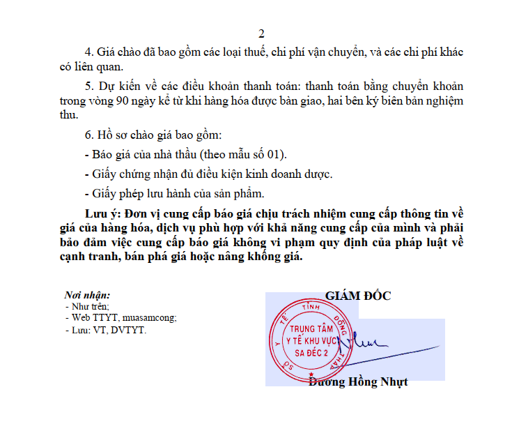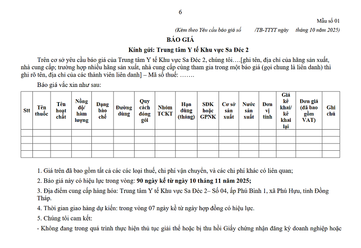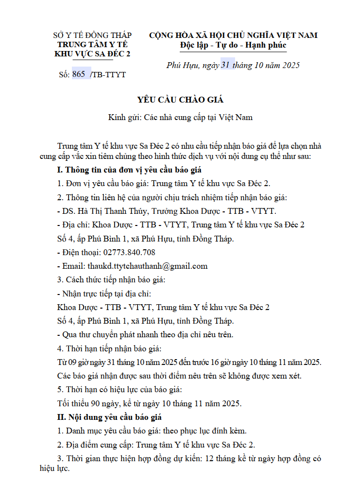 Về việc tiếp nhận báo giá tổ chức mua sắm trang thiết bị, hóa chất, vật tư y tế...